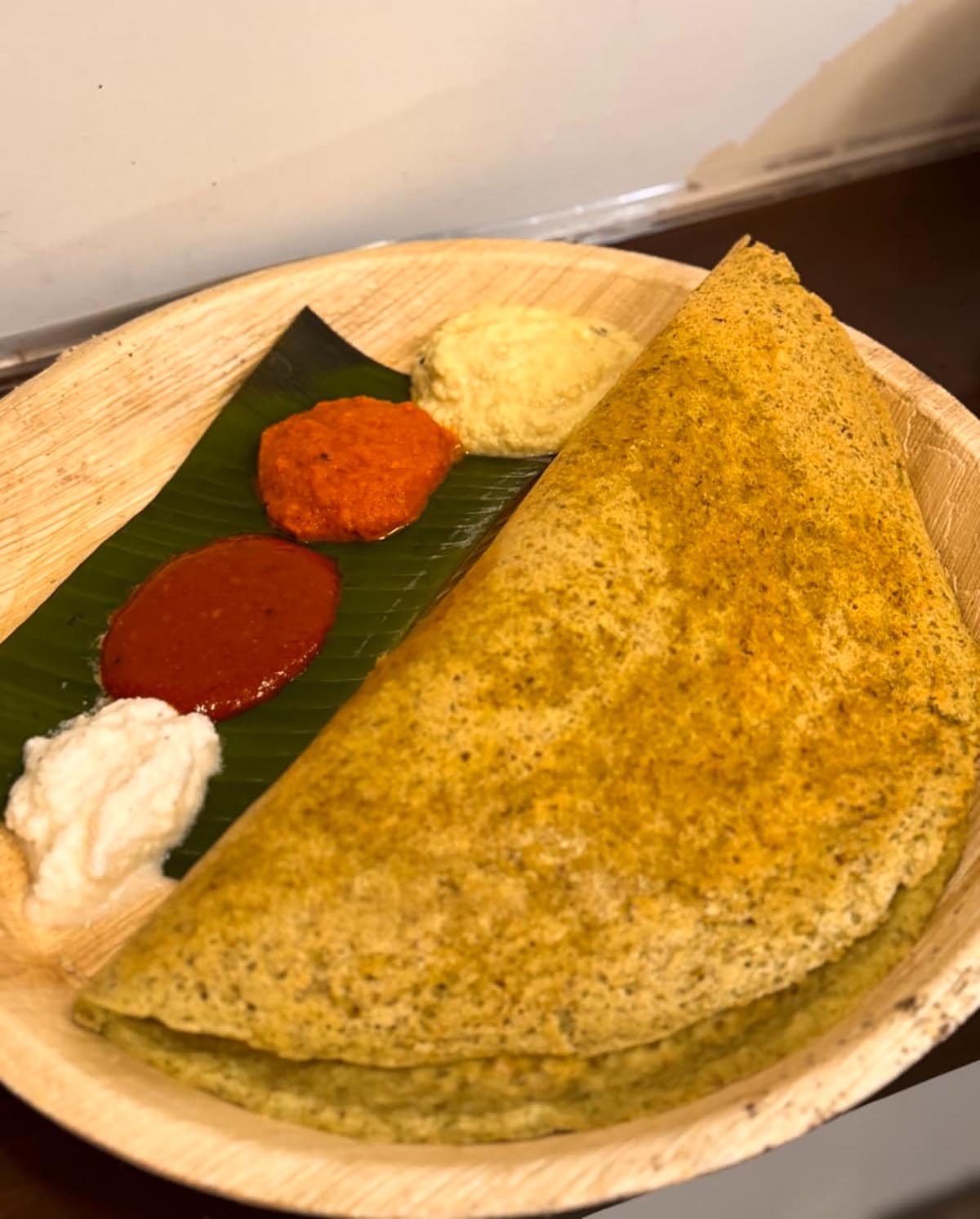 A Hyderabad specific version of the pesarattu, is the MLA Pesarattu. Legend has it that once a Member of the Legislative Assembly requested for a unique combination. The pesarattu with an upma filling. The perfect balance was achieved, the crispness of the moong pesarattu along with the comforting texture of upma. The item soon became a local favorite and is being served for the first time in Mumbai at Nānna House.